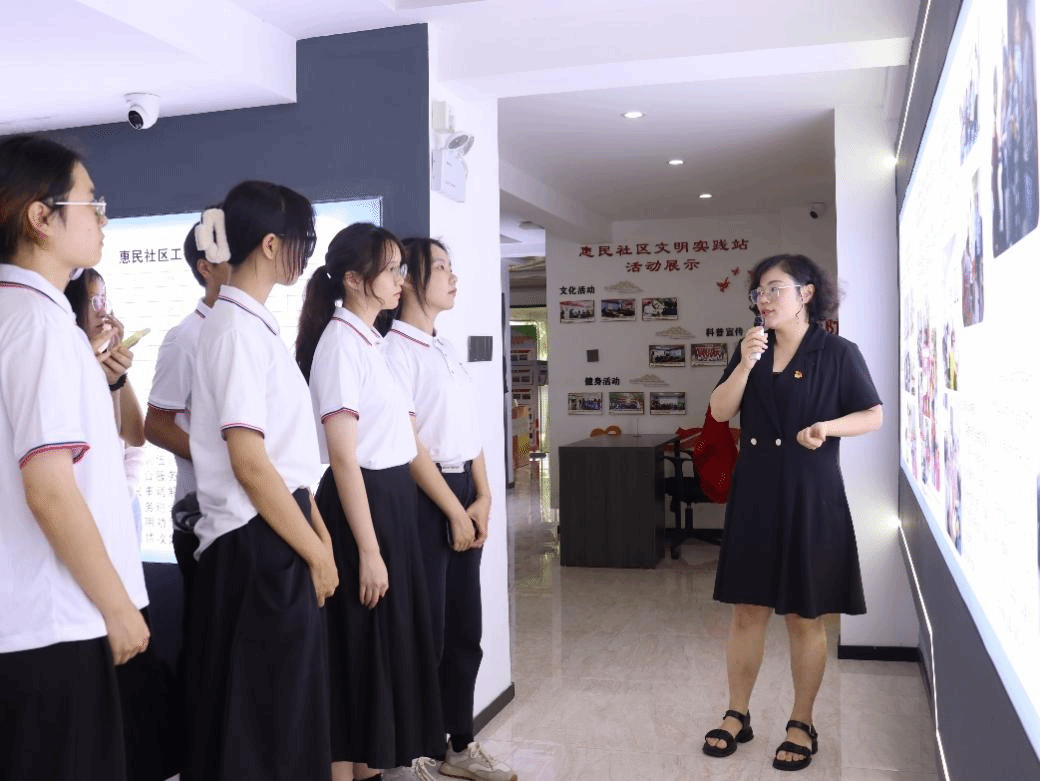 最后,惠民社区讲解员林燕婷带领实践团成员实地参观、了解惠民社区建设经验及机构框架,引导实践团成员切实做到理论联系实际,实现“思政小课堂”与“社会大课堂”的贯通发展打下坚实基础。