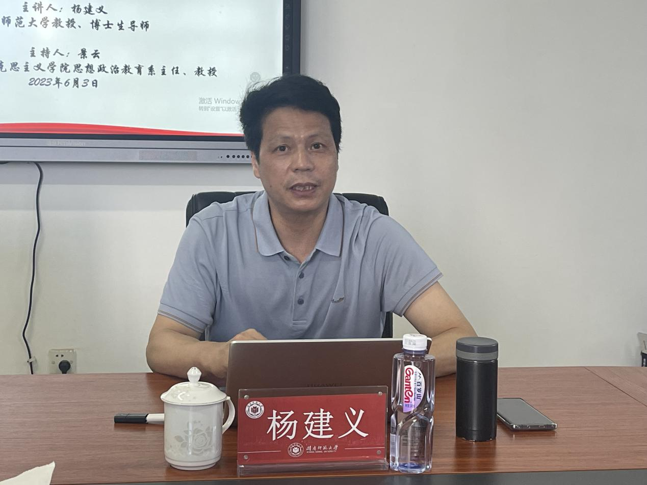 杨建义教授从学习领悟习近平总书记关于思政教育的重要论述,阐释思政课一体化建设的内涵,梳理思政课一体化的发展历程,提出发展中亟待解决的问题,探寻推进思政课一体化发展的思路等五个方面进行论述。杨教授指出:思政课教师要坚持系统思维,坚持问题导向,加强难题突破,着力解决一体化中的“断点”“堵点”“难点”和“痛点”等问题。同时要把握“时代新人目标”“学段课程目标”和“内化目标”三条主线;加强一体化思考与实践。在统筹推进大中小学思政课一体化建设的进程中,切实注重教师、教材和教法等发力点的精细运行,注重思政课各学段作用力的精准衔接、注重思政课育人规律的精深探求、注重强化“共建共享”的精确思维。