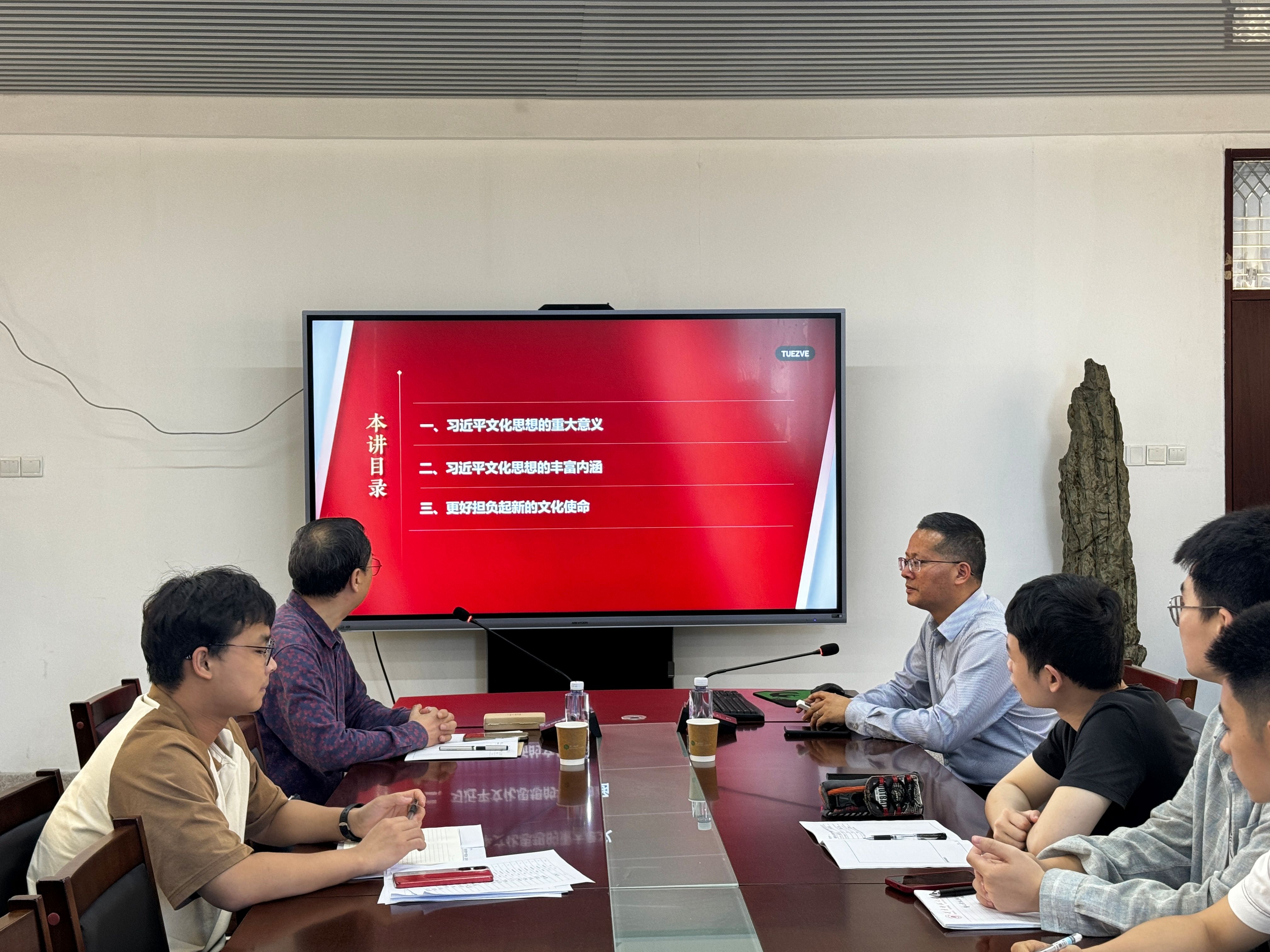 2023级全体硕士研究生作了题目为《习近平文化思想的重大意义和丰富内涵》的专题讲座,讲座由何孟飞教授主持。