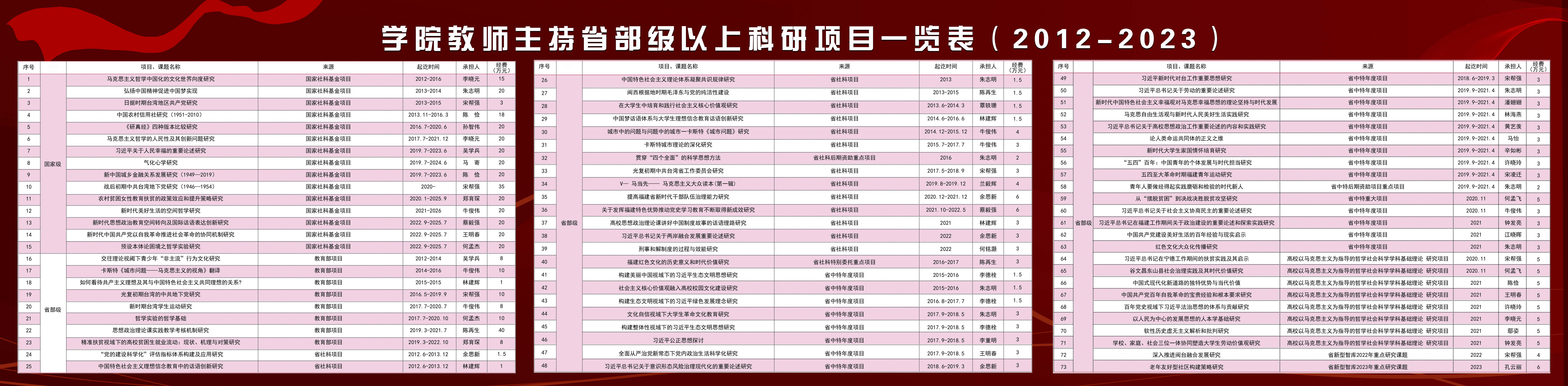 学院教师主持省部级以上科研项目一览表(2012-2023)