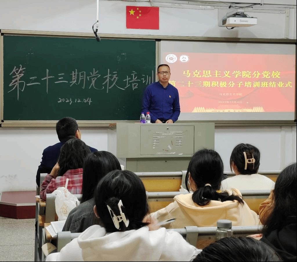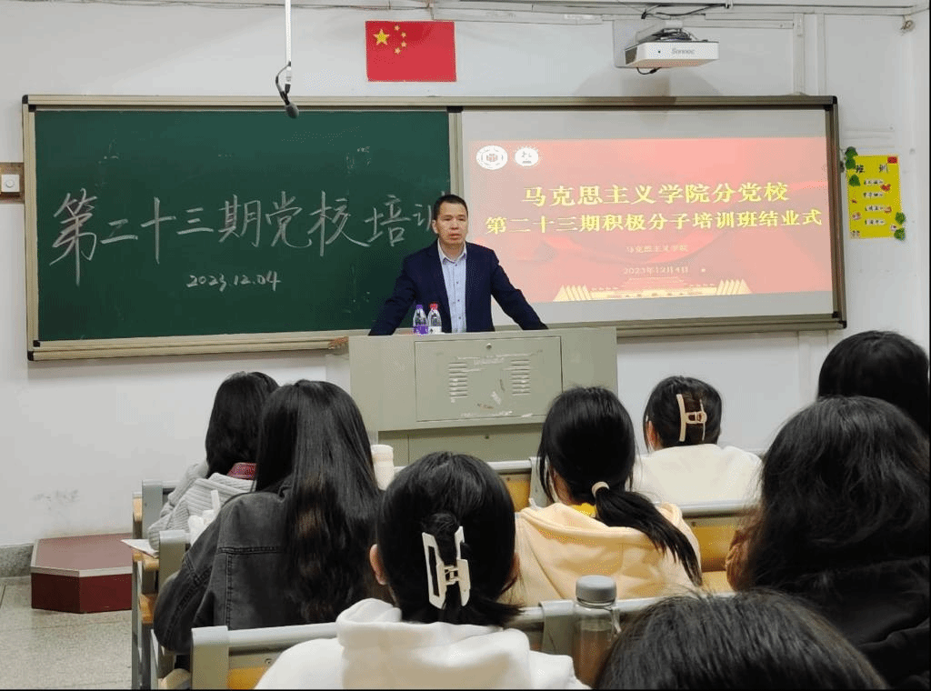 分党校第二十三期入党积极分子培训班结业式在综南201举行。院党委副书记邓战军、党委组织员陈精焕以及全体学员参加。