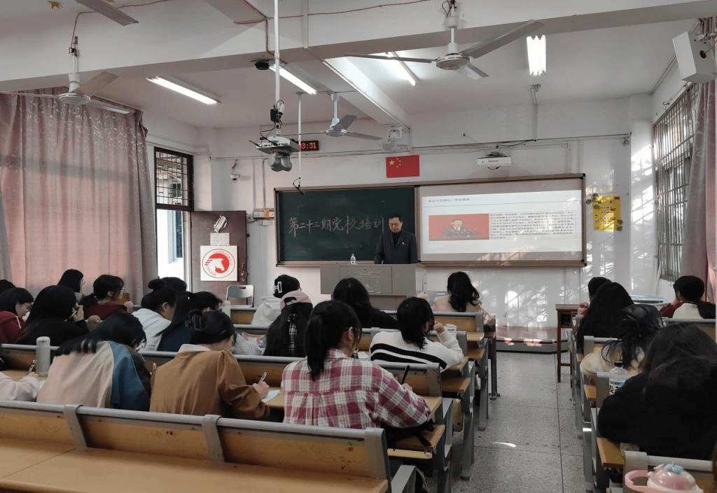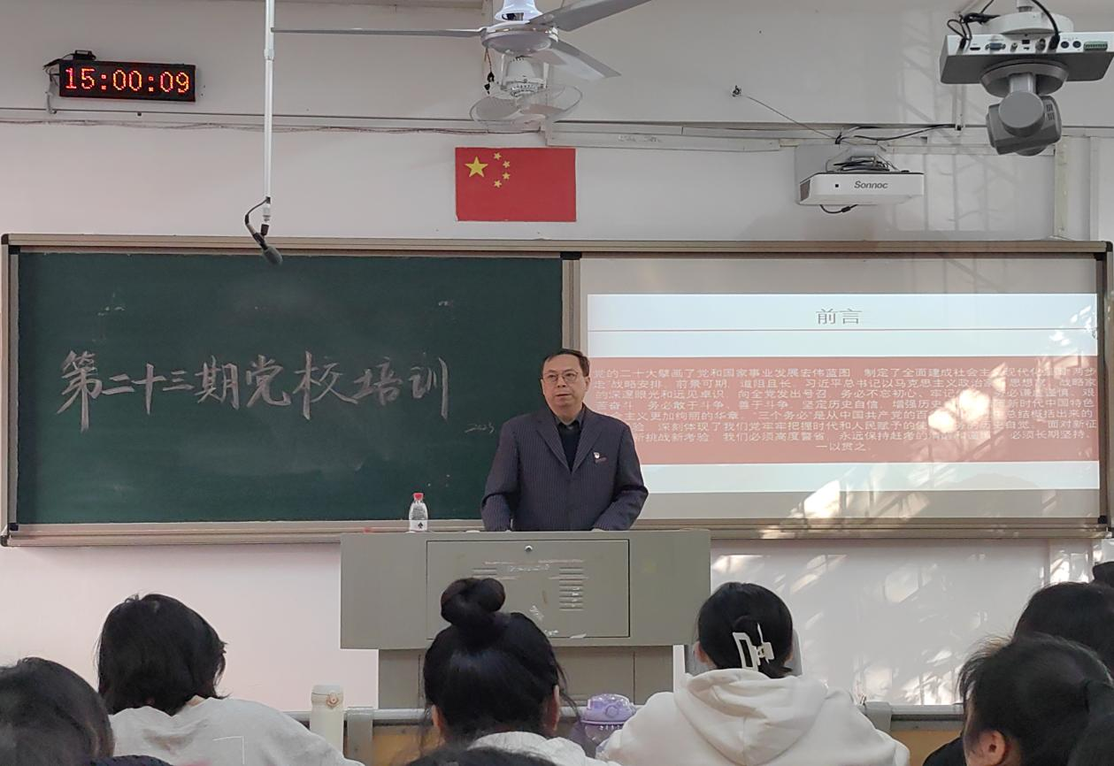 第二十三期入党积极分子培训班第二讲在综南201举行。本次培训以《牢记“三个务必”谱写新时代中国特色社会主义更加绚丽的华章》为主题,由何孟飞老师主讲,全体入党积极分子参加。