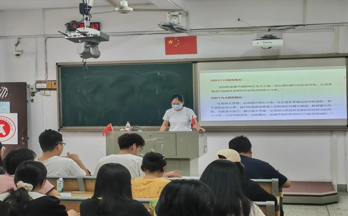 马怡老师围绕斗争精神形成的理论渊源、历史依据为引,从第三个历史决议指出了我们为什么以及如何发扬斗争精神。马怡老师指出发扬斗争精神是新时代党和国家对内外环境的科学研判,当今世界正经历百年未有之大变局,世界的不稳定性不确定性增多,是经受住“四大考验”和化解“四大危险”的必由之路。强调要通过坚持人民立场,坚持中国共产党领导以及掌握二十大报告中所说的唯物辩证法去解决现实问题。最后,她鼓励学生们要把斗争精神和本领落实到实际中去,为早日成为一名中国共产党员而奋斗。