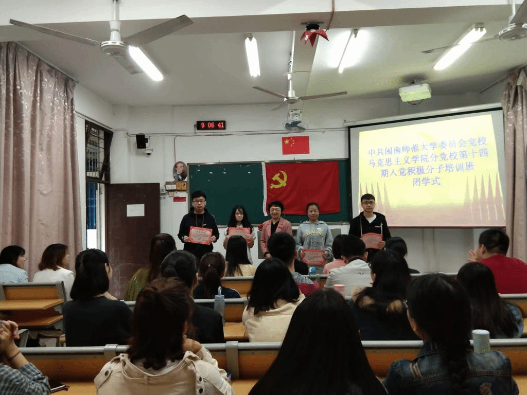 4月13日上午,第十四期入党积极分子培训班于综南202举行了结业式,此次结业式,此次结业式共分为三项议程。第一项,全体人员奏唱国歌。第二项,黄艳红老师做结业讲话,指出同学们虽离成为一名合格的中国共产党党员更近了一步,但仍需要端正学习态度,不断学习以及总结,同时,对学员们提出了几点希望:新形势下,同学们要提高政治觉悟,端正入党动机;发挥先锋模范作用,牢记全心全意为人民服务的宗旨,始终坚定理想信念,锤炼意志品质;树立勤奋学习,积极参加社会实践,做一名全面发展的优秀学生和合格学生党员。第三项,黄老师为4名优秀学员颁发荣誉证书,并为其他学员颁发结业证书,以此鼓励学员同志们学业进步,健康成长,尽早加入党组织,同时,坚守平凡的担当,承载复兴的冀望,点燃心中的激情,争做时代新人!