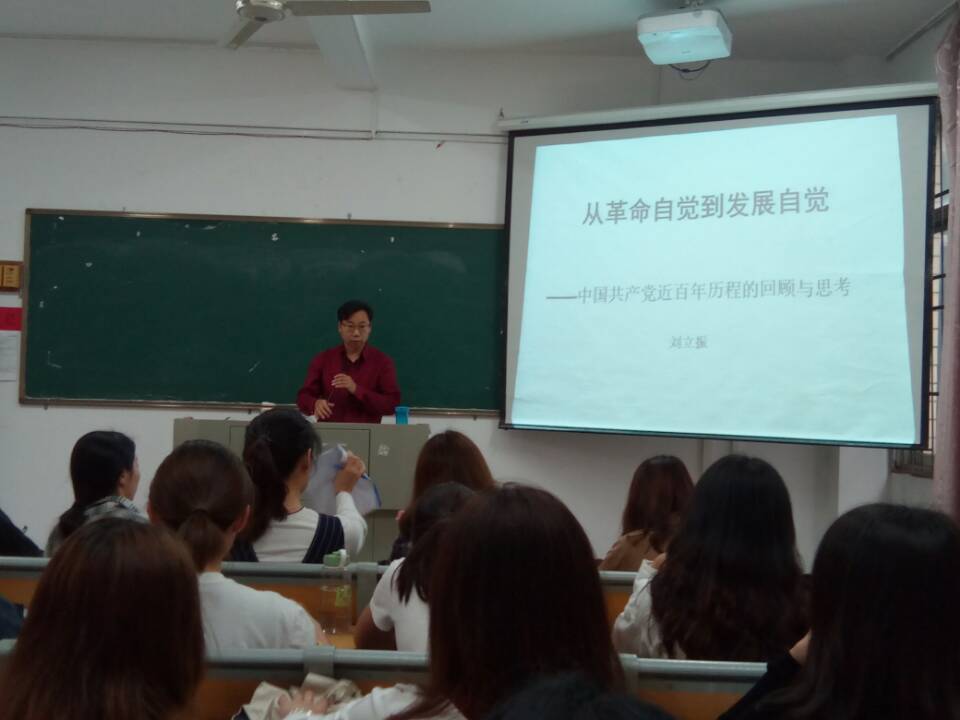4月15日上午,动漫屋 分党校第十二期第三讲党校培训于综南201开讲,刘立振老师以及2018年全体入党积极分子参加了此次培训。刘立振老师以“革命自觉到发展自觉:以近百年历程的回顾与思考”为主题展开了本次培训的第三讲。此次党校培训,使入党积极分子深化了对中国共产党的理解,领悟到在新时代要不断学习,树立终生学习的目标,不断提高自己的思想觉悟,理论联系实际,学以致用,用开阔眼界看世界。