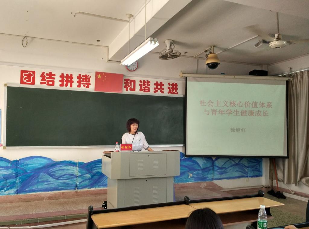2016年4月28日15时于博中403,法学与公共管理学院团委副书记徐继红围绕“社会主义核心价值体系与青年学生健康成长”的主题进行了精彩讲解。此次授课有利于学员们深刻理解社会主义核心价值体系的科学内涵和精神实质。