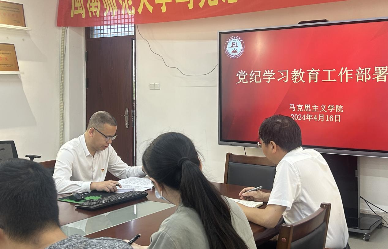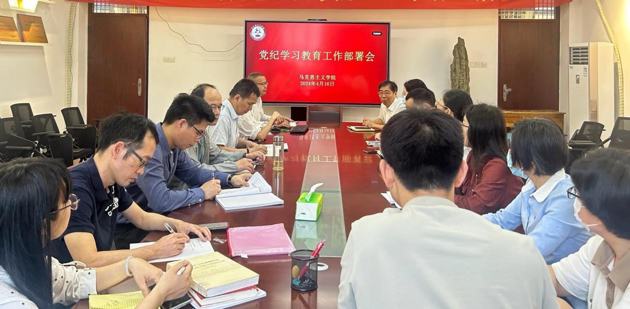 召开党纪学习教育工作部署会议。会议传达学习习近平总书记关于党纪学习教育的重要讲话和重要指示精神以及中央、省、校有关会议精神。学院全体党委委员、纪委委员、党支部书记参加会议,会议由院党委副书记、纪委书记邓战军主持。