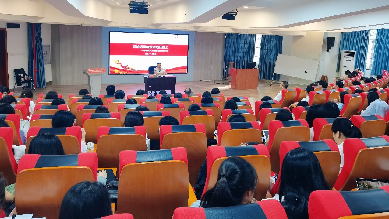开班式后,高国跃教授以“党的纪律建设永远在路上”为主题,深入解读《中国共产党纪律处分条例》,他围绕着党的纪律的概念、党的纪律的形成、党的纪律的建设、条例修订的重要意义四个方面旁征博引,将正面引导和反面警示有机结合,通过丰富的案例支撑,深入浅出地讲述了党纪学习教育的重要意义,引导全体党员学纪、知纪、明纪、守纪。他指出,党的纪律无处不在,党员要习惯在党纪的约束下工作和生活,要以党的纪律来规范自身言行,把遵规守纪刻印在心,内化为言行准则,进一步加强自我约束,强化纪律意识。
