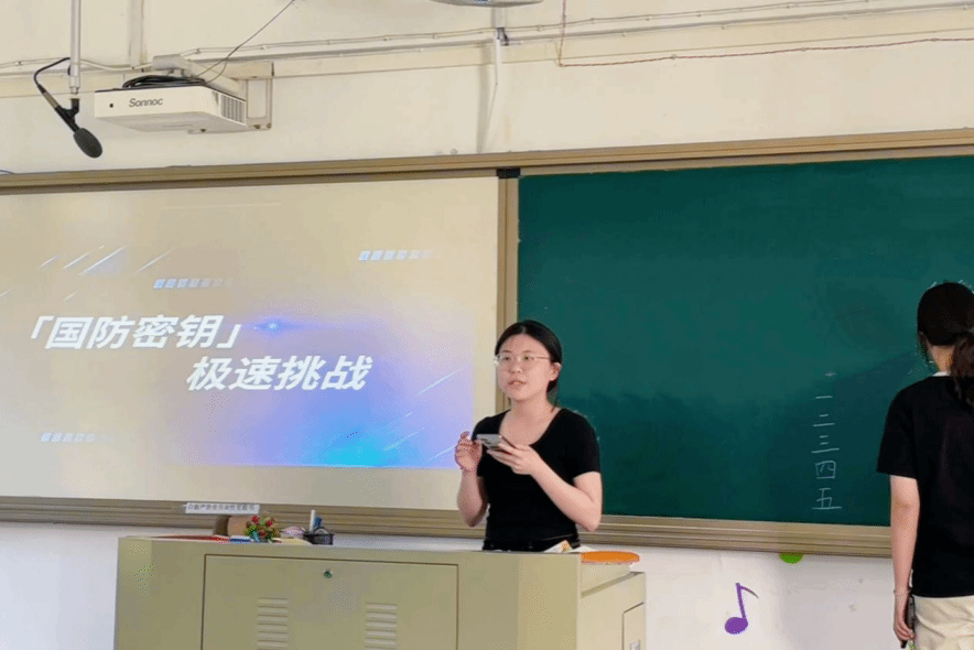 本次主题班会以线上线下结合的多元方式开展,通过观看相关视频、开展知识竞赛与安全隐患排查等形式,深化同学们对国家安全理论的理解,激发学习热情,提升安全防范能力,增强行动自觉。班会期间,同学们踊跃参与,在互动讨论中各抒己见,深刻认识到国家安全与个人命运紧密相连,纷纷表示要将“维护国家安全”的理念转化为实际行动。值得一提的是,2023级思政1班在实践环节创新设计“国防密钥极速挑战”互动项目,将理论学习与趣味实践巧妙融合。这一寓教于乐的沉浸式体验,让抽象的安全理念转化为可触摸、可参与的实践任务,既考验了团队协作能力,更以“解密闯关”的形式让“维护国家安全人人可为”的理念深入人心,成为班会中兼具知识性与趣味性的亮点环节。