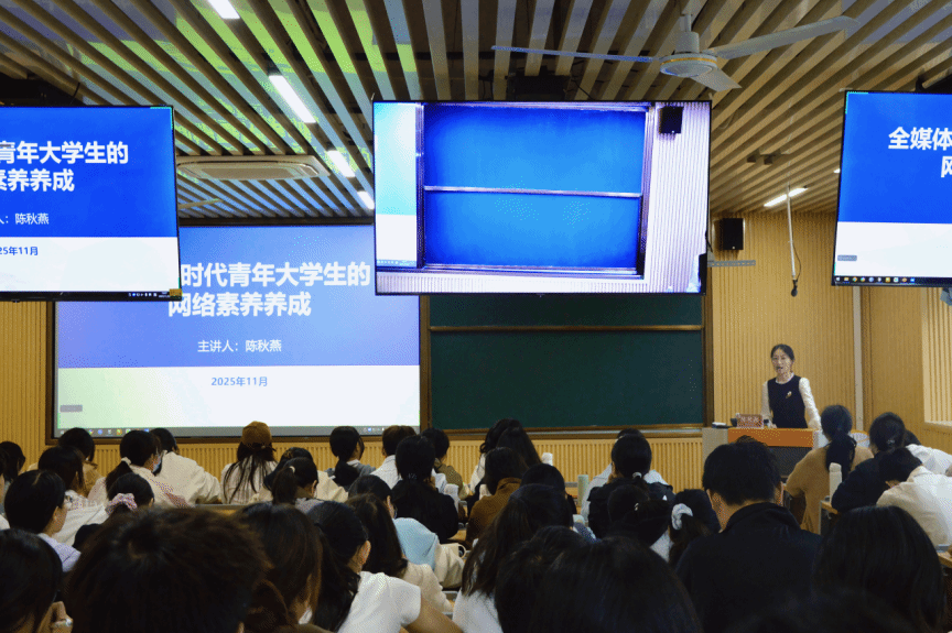 11月22日下午,校党委宣传部陈秋燕老师以“网民调查数据”为切入点,围绕网络素养的核心主线,通过传统媒体与新媒体的对比分析,深入剖析全媒体时代大学生网络素养养成的关键要领,并结合多种多样的案例启发学员思考,助力青年学员找准实践路径,争做时代浪潮中的“领航者”。