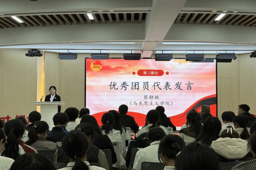 优秀团员代表蔡静颖同学与历史地理学院青马班学员代表赖若盈同学相继发言。