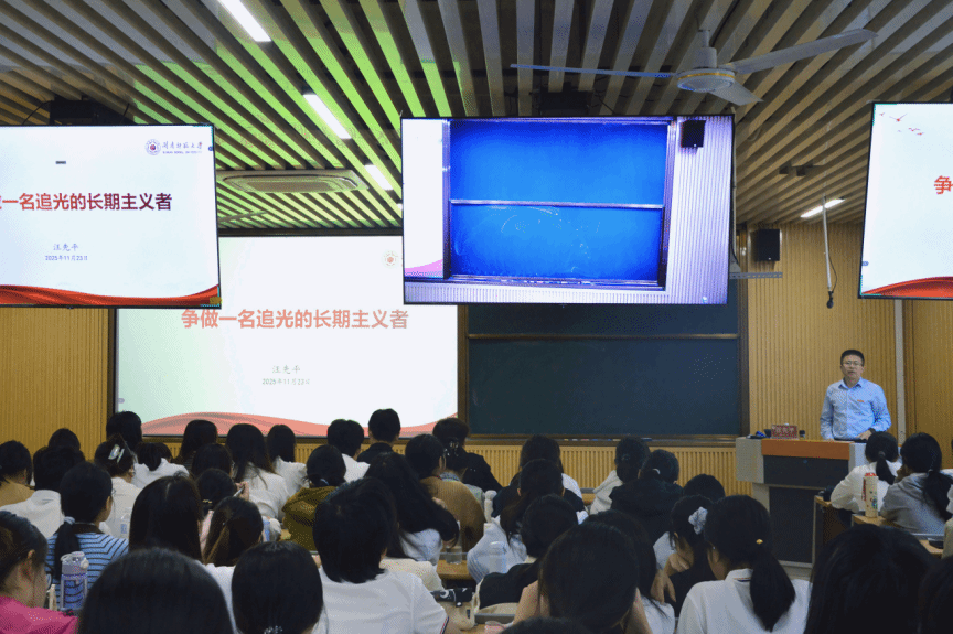11月23日下午,校学生处汪先平老师以“追光”和“长期主义者”为核心主线,深刻阐释了青年人“追光”的时代意义与实践路径,详细解读了长期主义者的内涵是“认准一件事,深挖一口井,走好每一步”,并提出“抵挡诱惑,强大韧性,与自我周旋”的长期主义践行方法论,鼓励学员们坚持不懈,排除万难,追求生命的光芒。