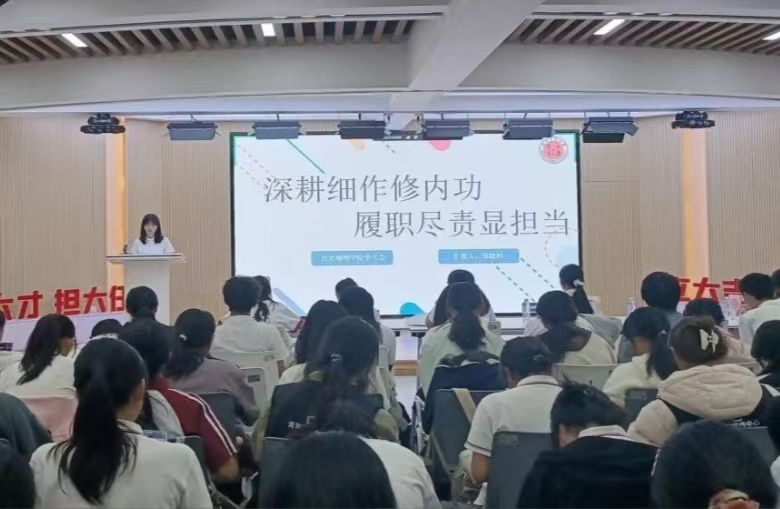 11月22日上午,学生工作处罗晓林老师聚焦团史,为两院学员讲授了一堂生动的团史教育课。罗晓林老师以设问开篇,引发学员深度思考,随后循着清晰的线索勾勒出团史发展脉络,让团史传承的理念深植每一位学员心底;接着解读共青团团章核心要义,提醒学员们严格遵守纪律;最后引用习近平总书记寄语“不负韶华,砥砺前行”,激励全体学员从厚重的团史中汲取力量,书写新时代的青春篇章。