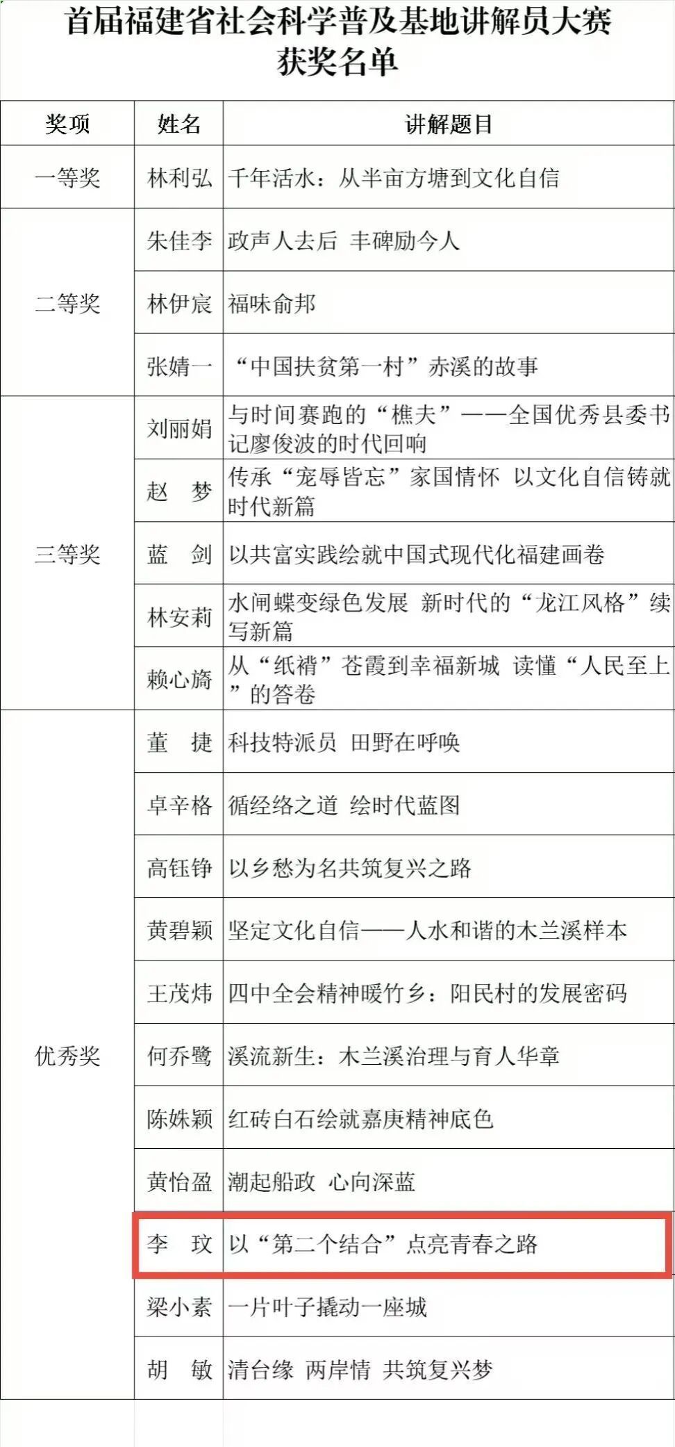 2025级硕士研究生李玟在福建省社科联主办的首届福建省社会科学普及基地讲解员大赛中,与来自尤溪县博物馆、谷文昌纪念馆等省社科普及基地的20名专业讲解员同台竞技,获优秀奖。其参赛作品《以“第二个结合”点亮青春之路》围绕“第二个结合”这一时代课题,结合马克思主义基本原理与中华优秀传统文化,从青年视角阐释了其理论内涵与实践意义。动漫屋