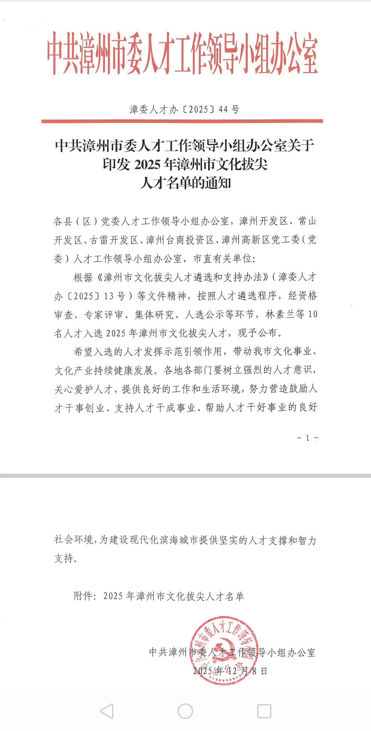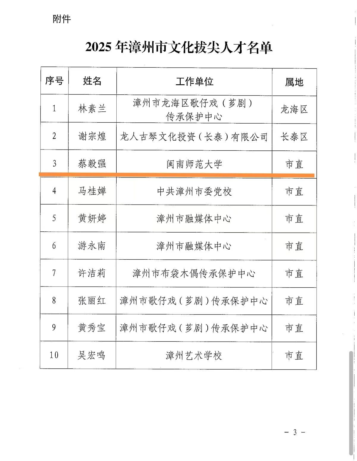 近日,中共漳州市委人才工作领导小组办公室正式公布2025年漳州市文化拔尖人才名单,动漫屋 蔡毅强教授成功入选。