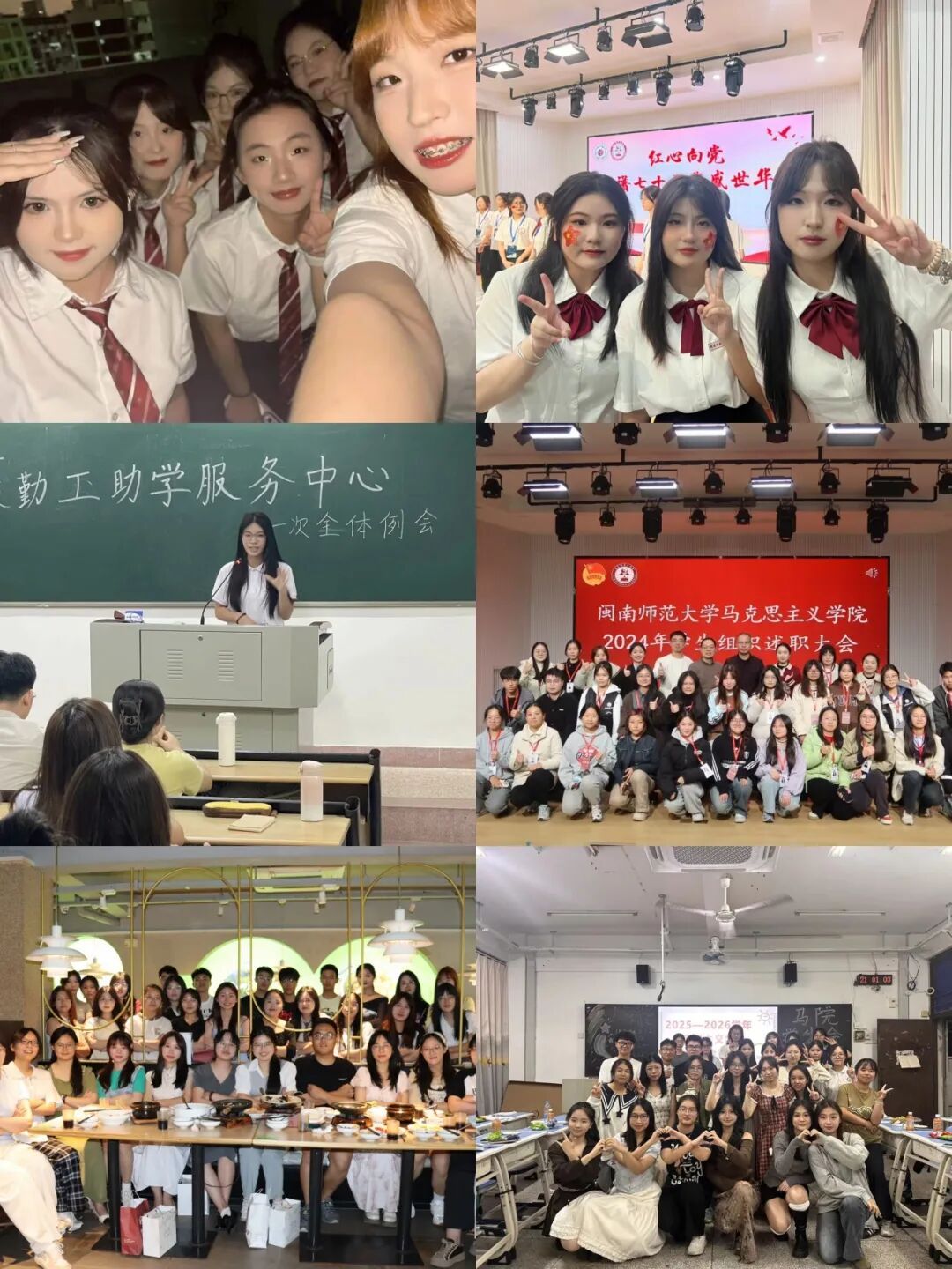 个人的身影,穿梭在校院两级的各类组织与社团中,各自绽放着独属于自己的光彩:有人是学生会里忙碌的 “服务者”,奔走在活动现场的台前幕后,为同学们的校园生活搭起便利的桥梁;有人扎根青年宣传中心,化身思想的 “传播者”,用一场场宣讲、一篇篇文稿,让红色理论与青春话语同频共振;有人活跃在读书社的书海间,成为文化的 “分享者”,在读书沙龙里与伙伴们共探经典、碰撞观点;还有人坚守在学生勤工助学服务中心,做起温暖的 “帮扶者”,为有需要的同学答疑解惑、对接岗位。每晚的宿舍卧谈会,是专属于她们的 “黄金时光”。带着学生会活动的疲惫与成就感,揣着理论宣讲后的思考与感悟,捧着读书社分享的新知与共鸣,拎着助学服务中的温暖与感动,大家围坐在一起,分享社团里的趣闻轶事,交流成长路上的迷茫与坚定。不同的经历在这里交汇,多元的成长在这里碰撞。她们互相启发,从彼此的故事里汲取前行的力量;她们彼此鼓励,在对方的进步中看见更好的自己。这间小小的宿舍,也因此成了一个充满活力的 “多元成长能量站”,见证着六个女孩在青春的赛道上,朝着各自的方向奋力奔跑,也携手并肩,共同成长。