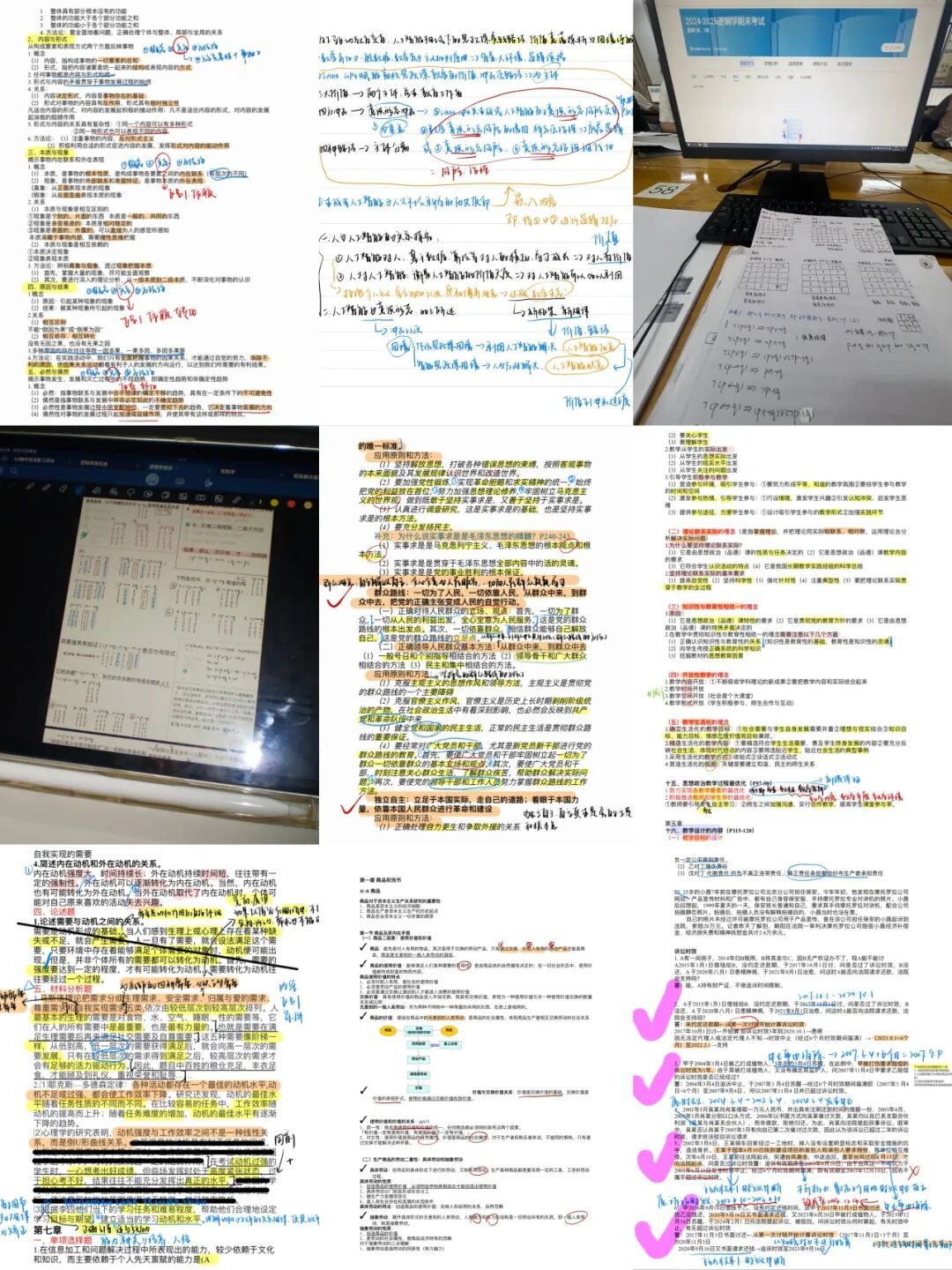 的学子,六个人心中都揣着对理论学习的敬畏与热忱,却也时常被《资本论》里抽象的经济范畴、新时代党的创新理论中深邃的思想内涵难住。每当这时,宿舍的书桌就成了她们的 “理论研讨小课堂”,饭后的闲暇时光也总能听见她们热烈的讨论声。她们自发解锁了专属的学习新方式:“经典理论解读会” 上,大家围坐一圈,拿着勾画得密密麻麻的课本各抒己见。期末备考的深夜,宿舍的灯总是亮到很晚,六张书桌连成一片温暖的光海,有人困了就冲一杯热咖啡,有人卡壳了就立刻举手求助。从商品的二因素到人类命运共同体的深刻内涵,从晦涩的政治经济学公式到鲜活的时代实践案例,她们一起逐字研读、一起激烈辩论,在头脑风暴中拨开理论的迷雾,在 “思政脱口秀式” 的轻松交流中化解理解的难题。这些朝夕相伴的时光里,她们早已不只是睡在上下铺的室友,更是携手攻克理论难关、共同奔赴成长的同行者。