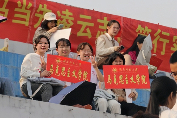 观众席上,场外观众们如雷鸣般的欢呼声为运动员们增添了动力,马院的同学们积极挥舞着双臂,为自己关注的运动员们喝彩,他们的期待与鼓励响彻云霄,给予运动员们源源不断拼搏的支持。