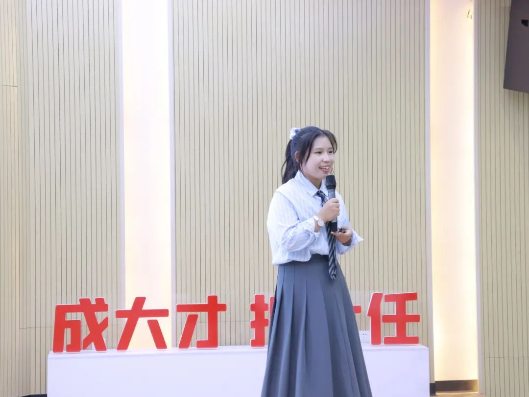 吴清榕同学以当今社会的热点话题——“内卷”为切入点,贴合现实的同时引发我们对内卷和努力的深思。她把内卷比作一条越走越窄的小路,而努力则是一条越来越宽广的大道,内卷俨然成为劳动异化的表现。演讲中,她说广大青年要转变心态,从内卷的困扰中清醒,在劳动中找寻自我价值,领略生命意义。陈伶俐同学以杭州亚运会为引,以古诗词道尽五千多年文化印记的中国式浪漫。她说曾经的中国“国家蒙难、民族蒙辱、文明蒙尘”,而如今中华文明熠熠生辉,中国人民文化自信空前绝后。许影同学演讲让大家深刻体会中国共产党人敢于斗争、善于斗争的精神品质,从抗美援朝到疫情保卫战,跨越历史长河与山海阻隔,改变的是岁月,不变的是中国共产党人的挺身而出和使命担当。杨靓同学以马克思主义能够给予当代青年梦想的光辉着手,从马克思主义给予坚定的信仰中感受恰同学少年风华正茂;从马克思主义给予的科学方法中,感悟实践才能检验真理,实干方能成就梦想。