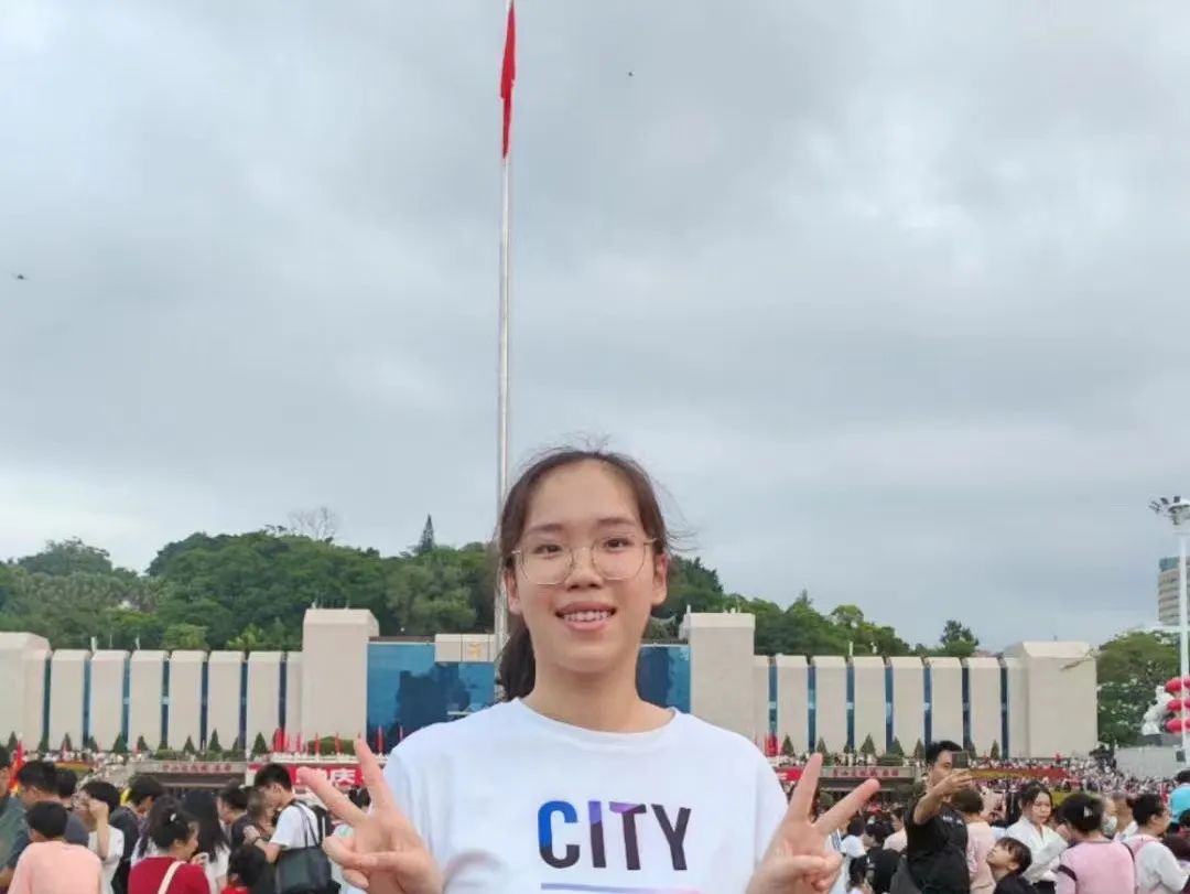 随阳光穿破夜幕而升起的是五星红旗,随红旗升起的是黄奕瑄同学那颗沸腾的爱国心。她望着那氤氲的天空,一瞬间有些恍惚,好像行走在漫漫时光之中,感受到冲锋陷阵的勇气,当家作主的豪气,保家卫国的骨气,极速发展的底气。黄弈瑄同学在日记这样感慨到,“国庆去哪?去听整齐的脚步声,响亮的口号声和歌唱声;去瞻仰庄严肃穆的国旗,去见证神圣的升旗仪式。”国庆,黄弈瑄前往福州五一广场,看到迎着光冉冉升起的五星红旗。她这样说:“红旗明媚,我的祖国蒸蒸日上,中华民族的意志不断向前。此刻,我切切实实体会到,我与国同在,国与我同在。历经沧桑,走过峥嵘,华夏风华正茂。”