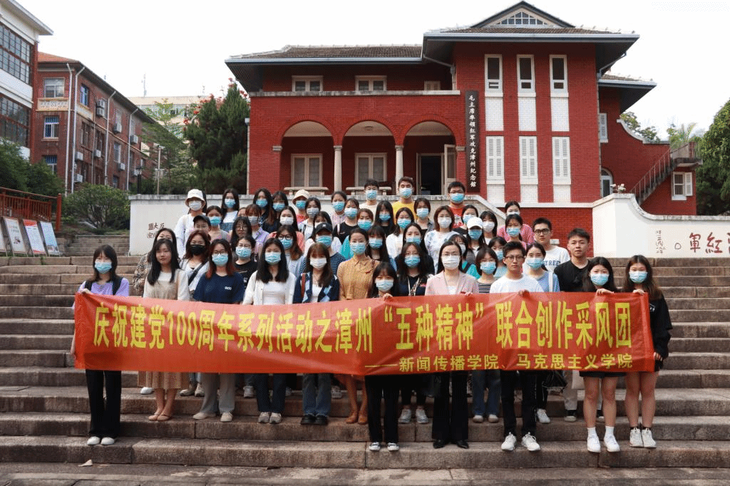 与新闻传播学院合作围绕漳州“五种精神”进行红色文化作品的联合创作,并进行实地采风的“第一站”。同学们收获了一次难忘的实践体验,学到了生动的党史知识,深化了对漳州“五种精神”之一的红军革命精神的认识和理解,在实地交流中,师生们沟通了创作理念,为今后慕课拍摄、联合主题创作明晰了思路。活动结束后,同学们就此次实践学习进行了深入交流,纷纷表示作为新时代的青年一代,我们更应该铭记我们党波澜壮阔的百年历史,在历史性与现实性的交互共生中发扬好红色传统,借助自己的专业特长,把党的优良传统和党的故事传播好,讲述好。