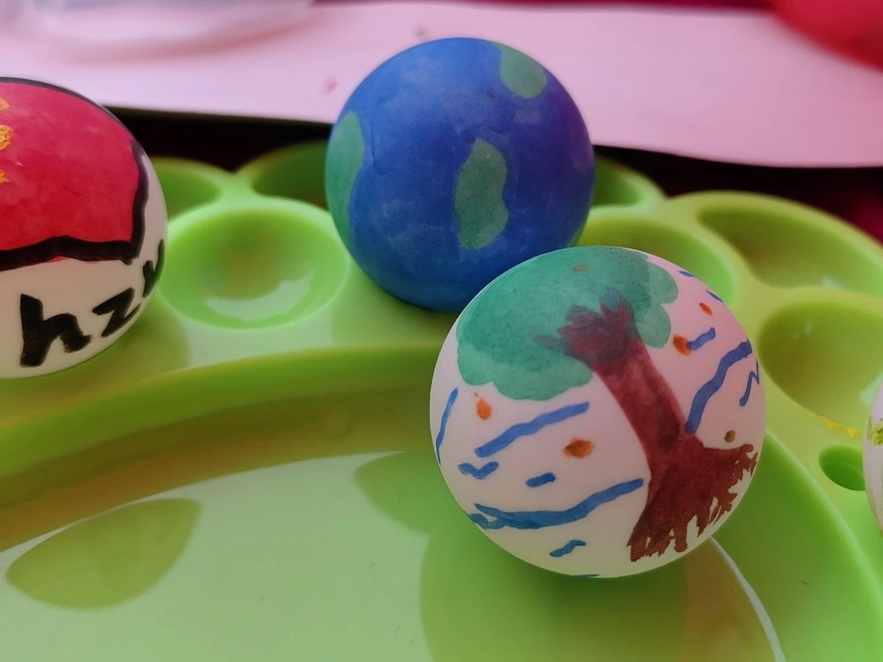 弦歌广场上举行“创造星球的人”活动。活动现场,同学们利用准备好的彩绘颜料,根据自己的想象,在白色乒乓球上绘制山水林田湖草,制作属于自己心目中的生态星球。此次活动不仅激发了同学们的创造力,还让同学们感受到了生命与生态的绚丽。