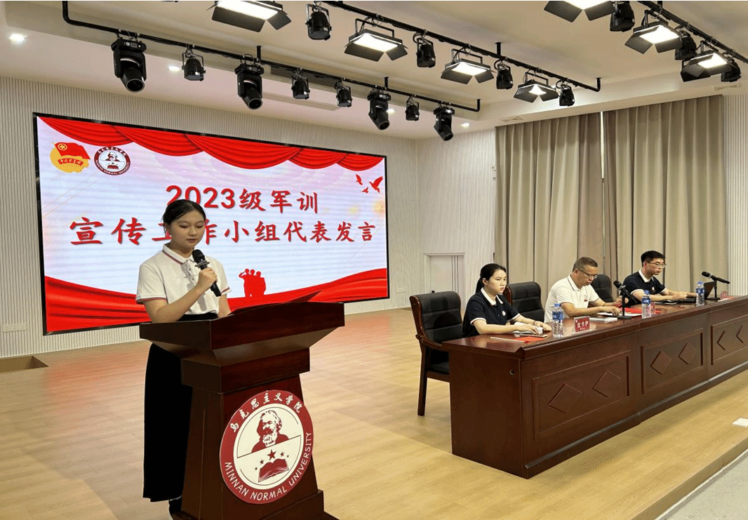 在庄严嘹亮的中国人民解放军军歌声后,2024级新生辅导员向在座师生详细介绍了军事技能训练方案的主要内容、考核标准,纪律要求以及行为规范,他鼓励同学们以饱满的热情和顽强的精神,勇敢迎接军训考验,在军训中锤炼铁的纪律、铁的集体、铁的精神和铁的身体。