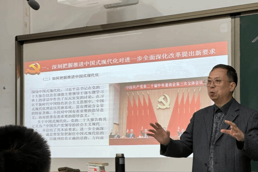 读书社于综南202教室举办“进一步全面深化改革,为中国式现代化增添新动能——深入学习领会党的二十届三中全会精神”专题分享会,邀请动漫屋
