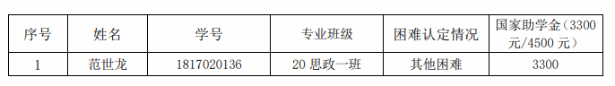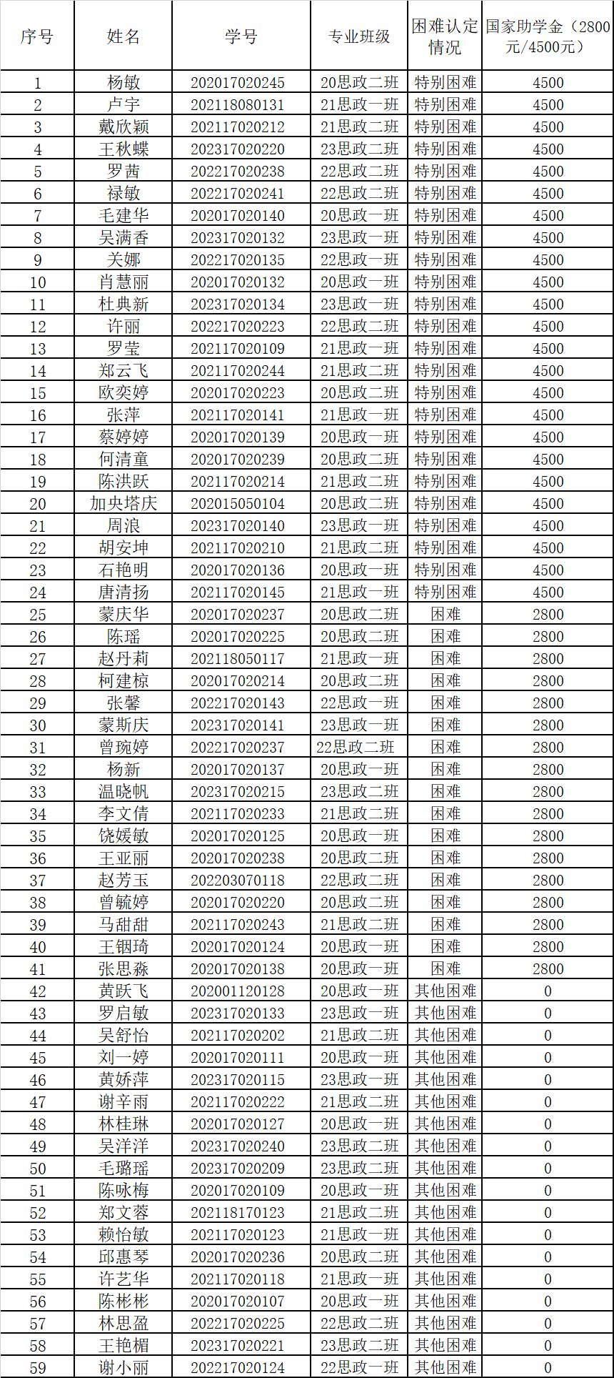 根据《动漫屋 家庭经济困难学生认定工作及国家助学金评定暂行办法(修订)》(学工〔2023〕25 号)文件要求,现将动漫屋 2023-2024学年国家助学金评定名单公示如下: