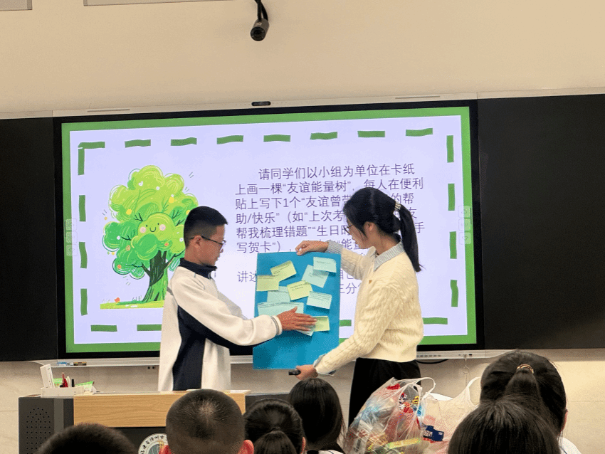 2025级思想政治教育专业硕士研究生叶琳珊和张淑艳担任主讲人,在漳州三中初中部开展“思政送教”活动,通过课堂讲解、情景演绎与互动分享等多种形式,与学生进行深入交流。