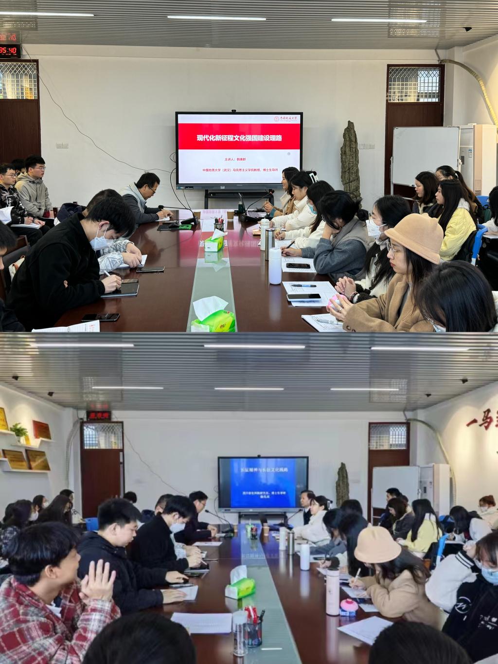2023级硕士研究生分别做了题为《现代化新征程文化强国建设理路》、《长征精神与长征文化线路》的专题讲座。讲座分别由副院长牛俊伟教授、余思新教授主持。(通讯员 张小敏、汤载宁)