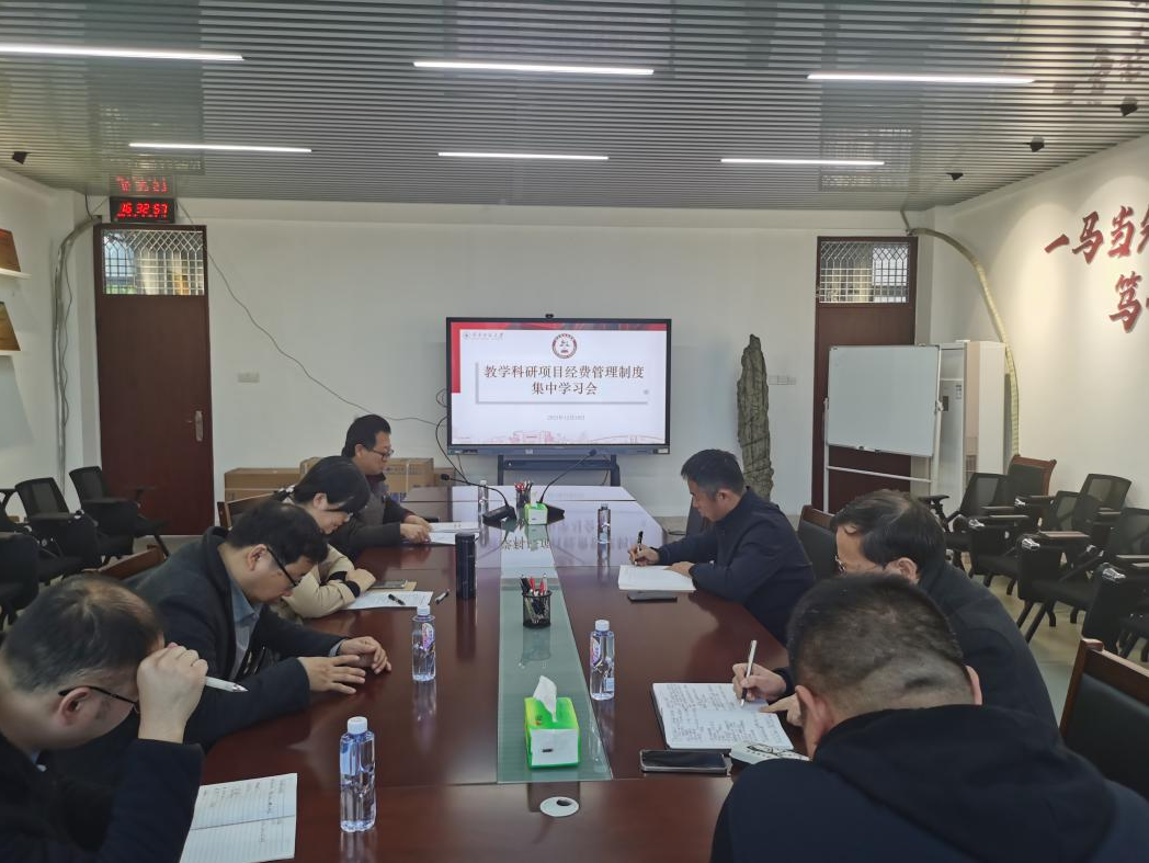 在综合楼中区404会议室召开教学科研项目经费管理制度集中学习会,学院办公室主任、教研室主任及副主任参加学习会,会议由牛俊伟副院长主持。