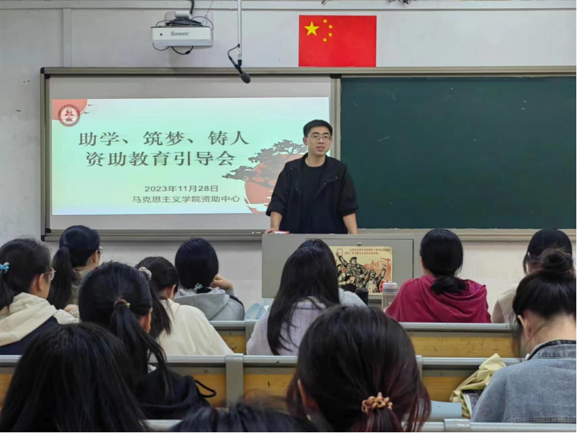 资助中心于综南203召开助学、筑梦、铸人资助教育交流会,辅导员沈书伊、任程龙详细阐述学生资助的程序和标准。(通讯员 庞量午)
