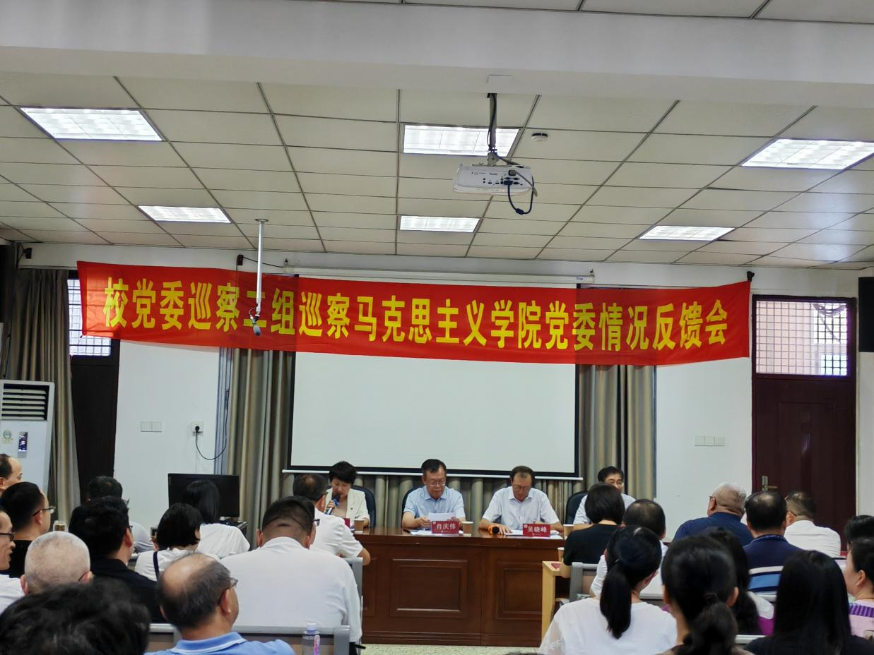 党委情况反馈会在综合楼中区504召开。校党委副书记肖庆伟、校党委巡察组、组织部、纪委相关人员、学院党政领导班子成员及全体教职工、学生代表参加会议,会议由党委书记方琼主持。