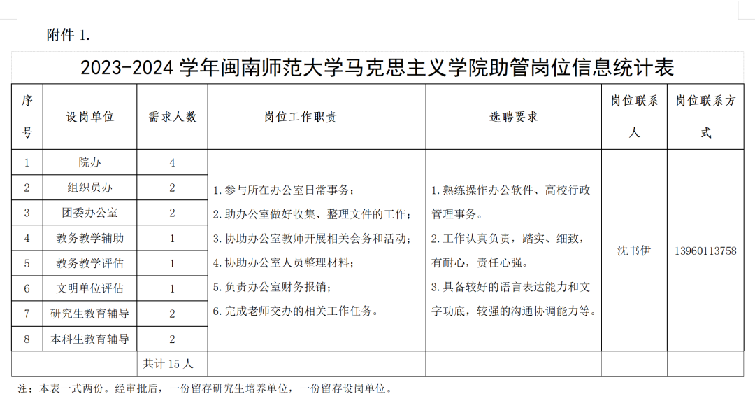 助管岗位信息统计表》(附件1)。