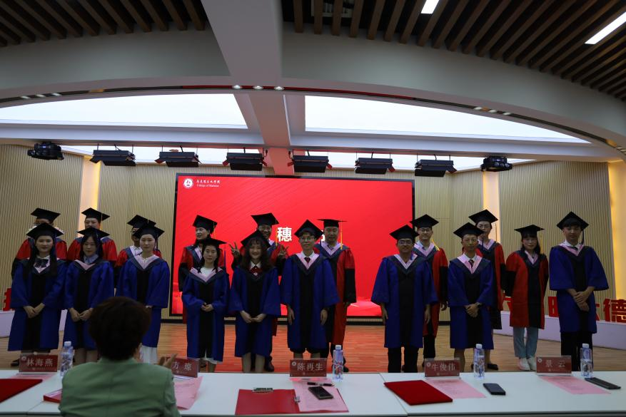 副院长林海燕宣读获得硕士学位、学士学位毕业生名单;副院长牛俊伟宣读2023届优秀毕业生表彰决定。学院学位委员会为获得硕士学位、学士学位毕业生援正流苏。