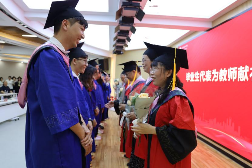 党委书记方琼为优秀毕业生颁发荣誉证书,随后毕业生为教师代表献花。