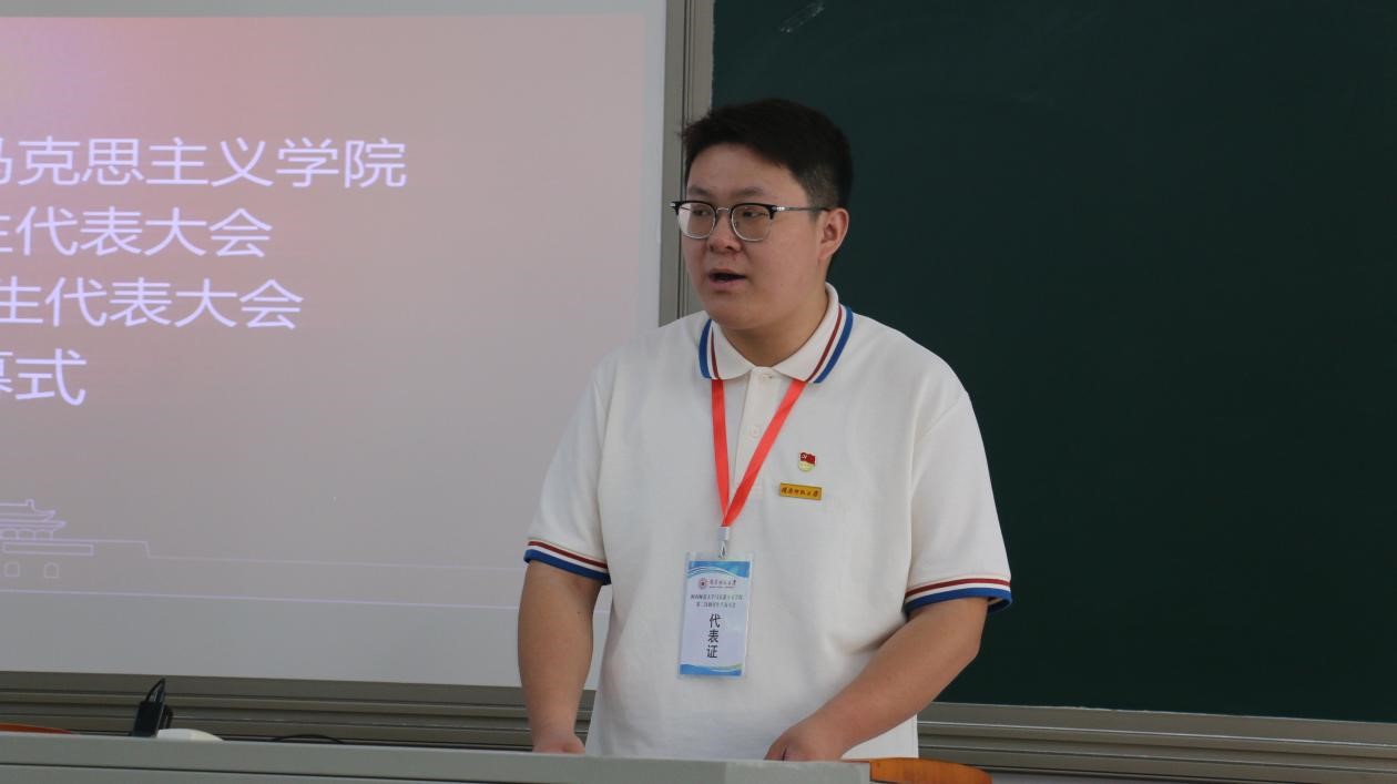第二次学生代表大会、第二次研究生代表大会在综合楼南区202教室召开。院团委副书记潘怀杰出席了开幕式。大会正式代表、列席代表共48人,开幕式由2022级思想政治教育专业研究生赵怡捷主持。