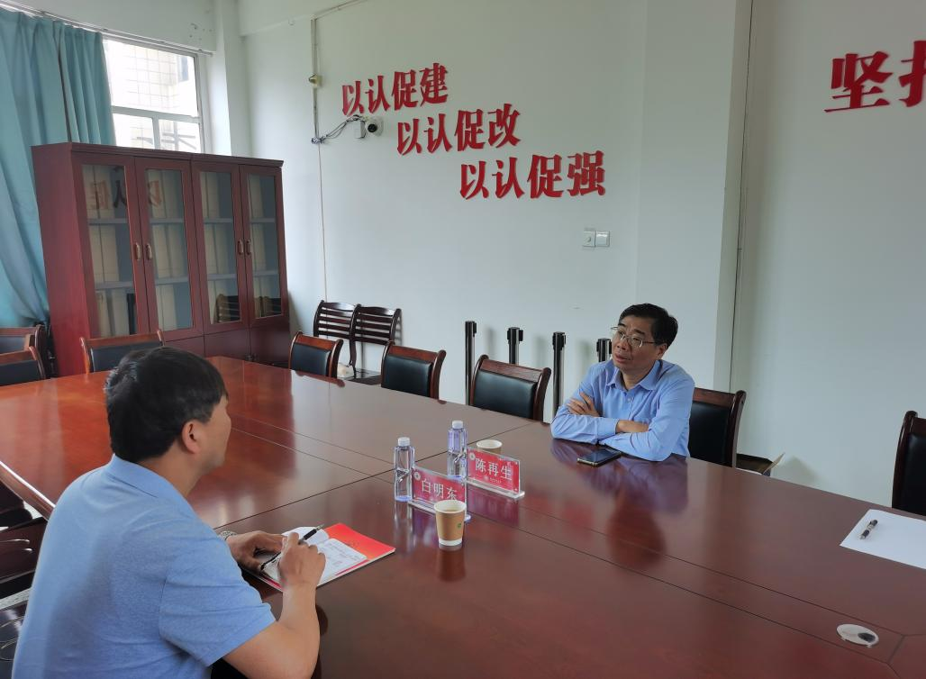 院长陈再生教授在综合楼东区301室与来宾进行洽谈交流。