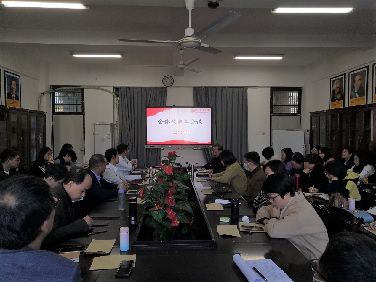会议强调,学院全体教职员工要把思想和行动统一到大会精神上来,认真学习研究,推动省党代会精神在学院教学、科研、管理、服务工作中的贯彻落实,做好学习宣传活动,营造学习贯彻的浓厚氛围。要坚持党建引领,深化党史学习教育,持续抓好党建工作,推动学院高质量发展。要以获批马克思主义理论一级学科硕士学位授权点为契机,担当作为,勇挑重担,不断创新,扎实推进一流学科和一流专业建设。
