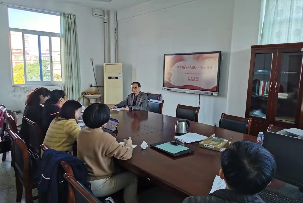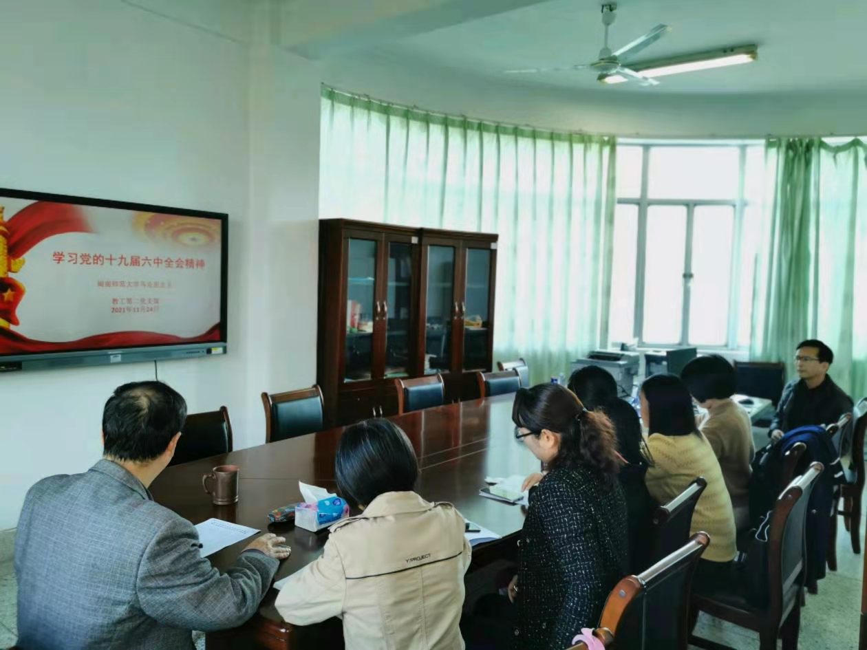 教工第二党支部组织支部全体党员认真学习党的十九届六中全会精神,支部全体党员围绕十九届六中全会精神展开深入的学习并研讨如何将会议精神融入本科生的《思想道德与法治》课程的教学。