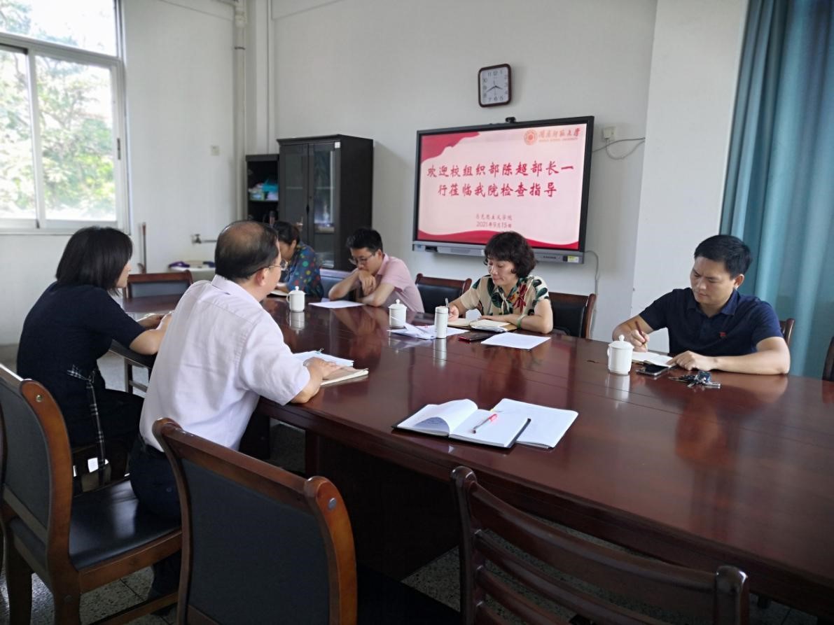 组织部一行参观了学院党建工作展板和党建活动室,通过座谈交流,着重了解了党建工作创新和品牌特色建设、基层党组织建设以及党员发展工作、干部队伍建设,听取意见建议。他们对学院开展党史学习教育、高标准发展党员、党员的教育培训、党员活动室建设等工作给予了肯定,希望学院进一步发挥思政课教师队伍师资优势,加强党建品牌培育建设,扎实推进“1+1+N”党建与思政品牌体系协同建设,深入挖掘地方红色资源的文化内涵,探索“地方红色文化+”与党建工作融合发展新模式,发挥好理论读书社、党史学习教育宣讲队作用,以“样本支部”建设为引领,推动形成各支部的品牌与特色。进一步加强党支部标准化、规范化建设,补齐配强党支部班子,不断完善党员管理体系和党组织建设体系。