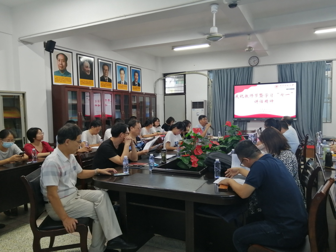 在综合楼中区404举行“庆祝教师节暨学习‘七一’讲话精神”座谈会。学院领导班子成员、宣讲团成员、各支部书记、新入职教师参加会议,会议采取线上线下相结合的方式进行,会议由陈再生院长主持。