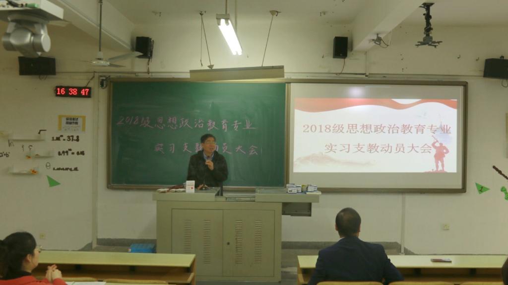 2018级实习支教动员大会于砺志楼225召开,院长陈再生教授、思想政治教育系主任景云教授出席了本次大会。