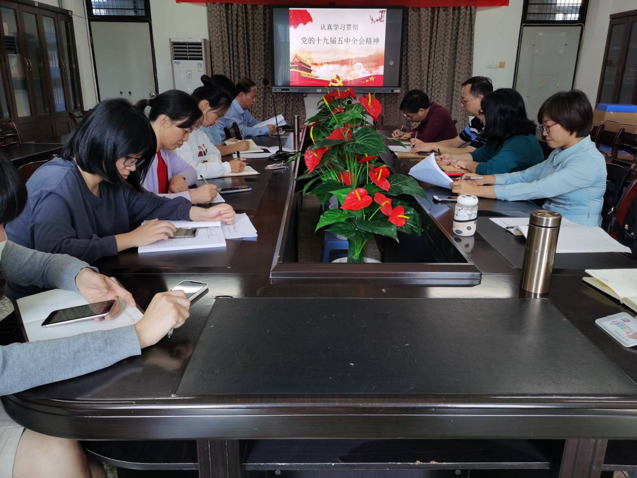 在综中404召开党委理论学习中心组扩大会深入学习贯彻党的十九届五中全会精神,全体党委委员、行政、政工干部参加了会议。