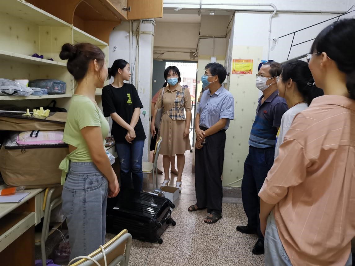 党委书记李定庆、院长陈再生、党委副书记陈佳薇及辅导员一行前往2020级硕士研究生宿舍走访慰问。