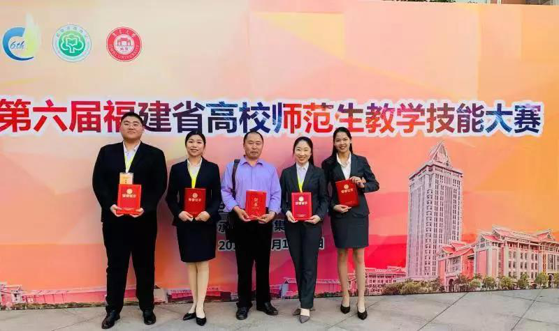 四名选手分别获得第一名、第三名、第四名和第七名的好成绩,景云老师获第六届福建省高校师范生教学技能大赛“优秀指导老师”荣誉称号。