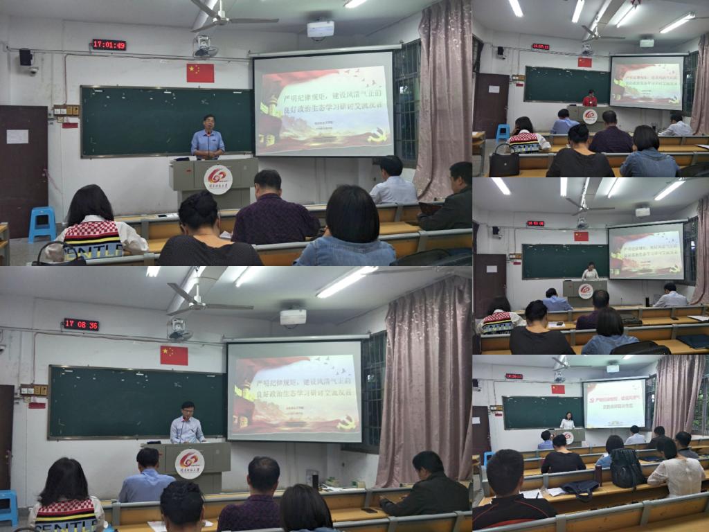 学院副院长林海燕同志作了重点发言,她从政治生态的提出与内涵党的政治生态建设历程与经验、建设风清气正的政治良好生态三个方面进行了阐释,她认为,作为一名高校老师特别是思想政治课老师,要着重从以下四个方面下功夫:一是自觉提高政治站位;二是发扬担当精神,积极主动作为,履行好岗位职责;三是讲情怀;四是对照《关于新形势下党内政治生活的若干准则》,做好表率。