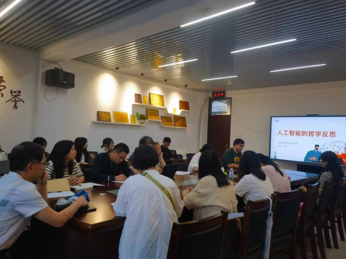 姚禹博士作《人工智能的哲学反思》的专题分享。姚博士从自身的学科专业出发,结合“原理”课程相关教学内容,通过生动的案例讲授了人工智能的发展、核心问题及三大理论学派,概述了目前在人工智能领域中技术伦理学研究的现状,并进一步从马克思主义理论视角对人工智能时代的机遇与挑战进行了深入的理论探讨。与会者纷纷表述,姚博士的讲授深入浅出,既有学理的深度,又有现实的针对性。通过此次分享,大家对人工智能有了更深刻的理解和把握。