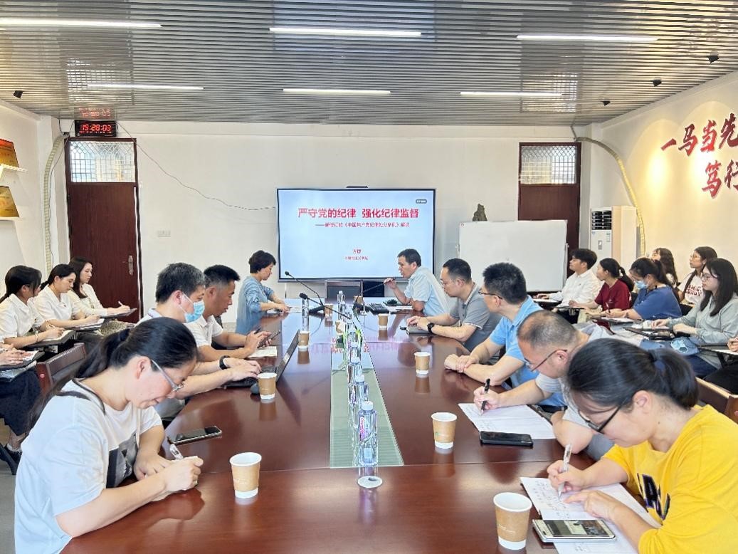 6月14日下午,院党委书记方琼在综合楼中区404会议室为师生党员讲授题为《严守党的纪律 强化纪律监督》的党纪学习教育专题党课,学院50余名师生党员参加了学习。